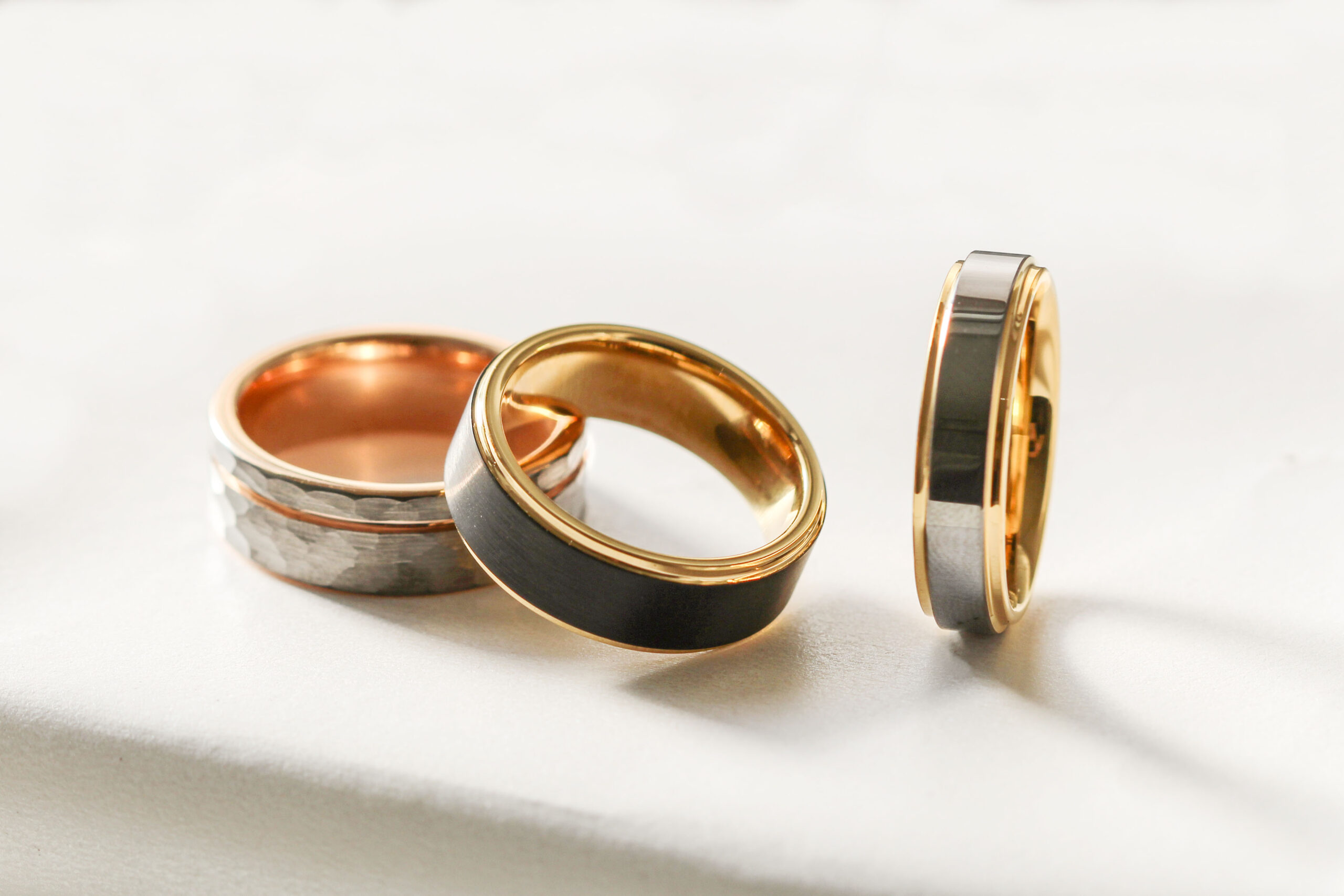 Our Tungsten wedding bands are our most durable rings. Made from a metal that does not scratch or bend out of shape.