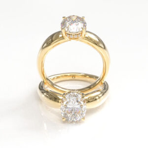 Sutton is a timeless elegant design with a modern twist and hidden halo tucked beneath the round brilliant cut center stone adds a subtle touch of mystery. This design strikes the perfect balance between classic beauty and contemporary strength.