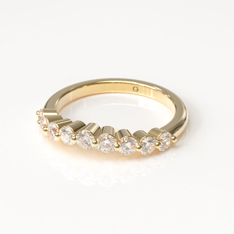 Our Slightly Curved Half Eternity Ring is made up of 9 Round Brilliant Cut Stones with a total Carat weight of 0.63ct. Each ring in this collection is an absolute show stopper. The perfect anniversary gift, wedding band or self purchase.