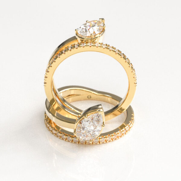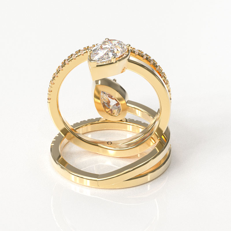 Margaux features a rebellious Pear shaped stone rising from a striking pavé band. Fearless, fluid and made to turn heads