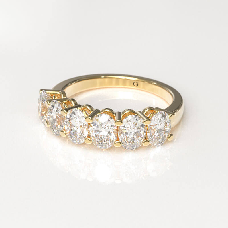 Our Oval Cut Half Eternity Ring is made up of 6 perfectly cut Natural, Lab Grown Diamonds or Moissanite Stones. Each ring in this collection is an absolute show stopper. The perfect anniversary gift, wedding band or self purchase.