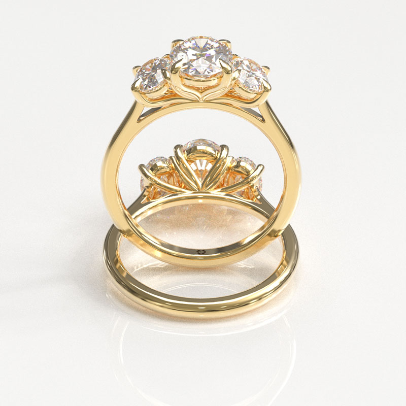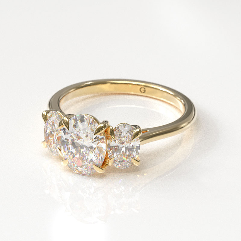 Our Oval Trilogy Engagement Ring features an Oval center stone with smaller ovals on both sides representing your past, present, and future. Expertly crafted for maximum sparkle, this elegant design offers classic beauty with meaningful charm.