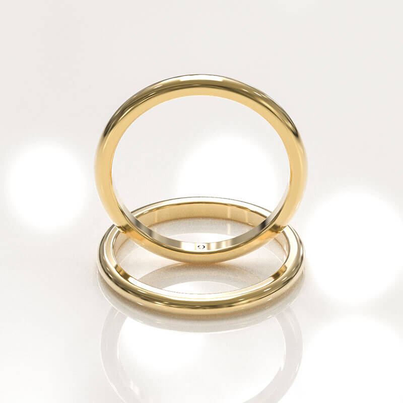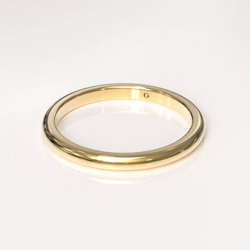 Traditional, petite, d-shape wedding band with high polished finish and comfort fit