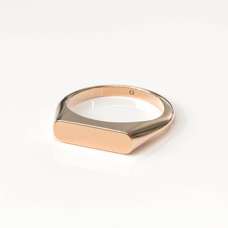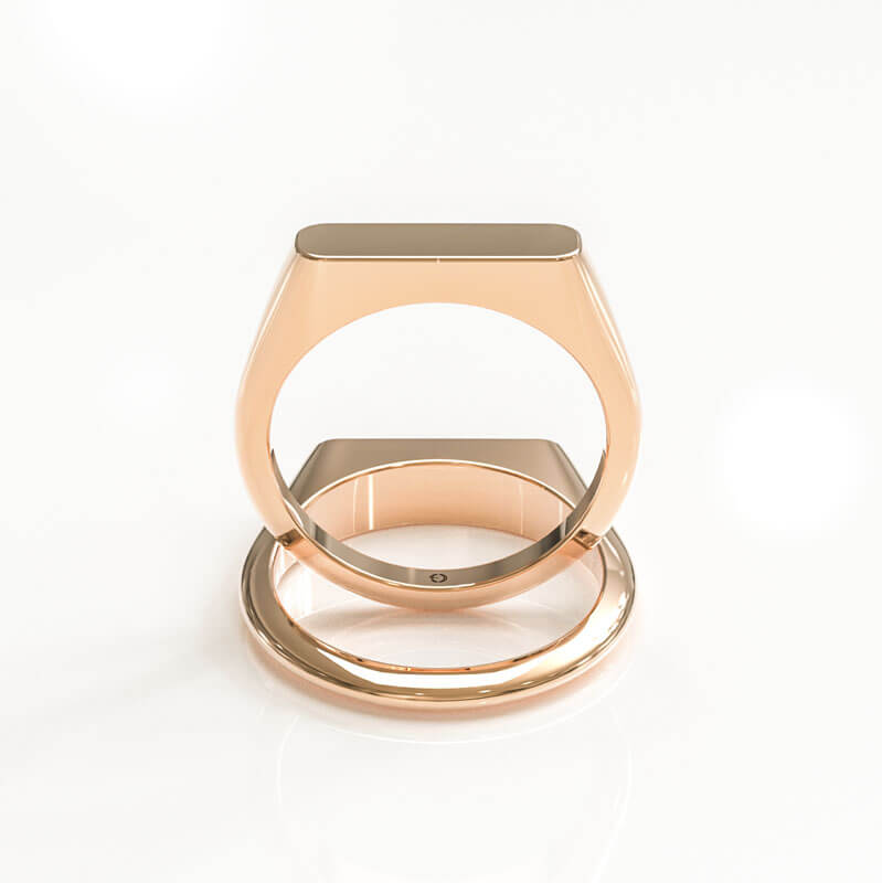 Crafted for those who appreciate timeless design with a modern edge. This sleek rectangular signet is available in yellow, white/ platinum, or rose gold, offering a luxurious foundation for your personal story.