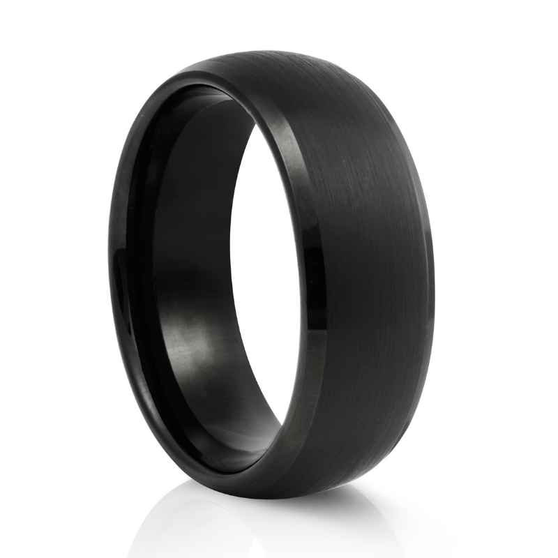 Black anodized tungsten wedding band with matt centre and comfort fit