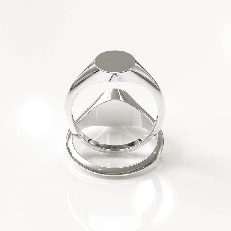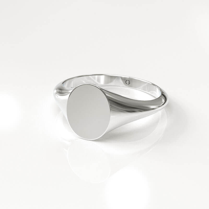Crafted for those who appreciate timeless design with a modern edge. This sleek Oval signet is available in yellow, white/ platinum, or rose gold, offering a luxurious foundation for your personal story.