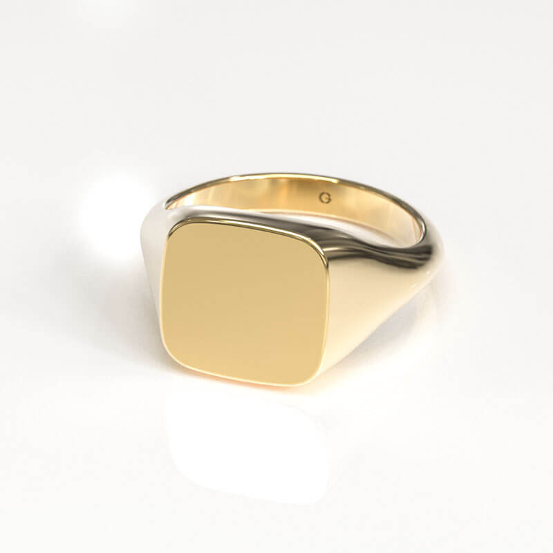 Crafted for those who appreciate timeless design with a modern edge. This sleek, traditional signet is available in yellow, white/ platinum, or rose gold, offering a luxurious foundation for your personal story.